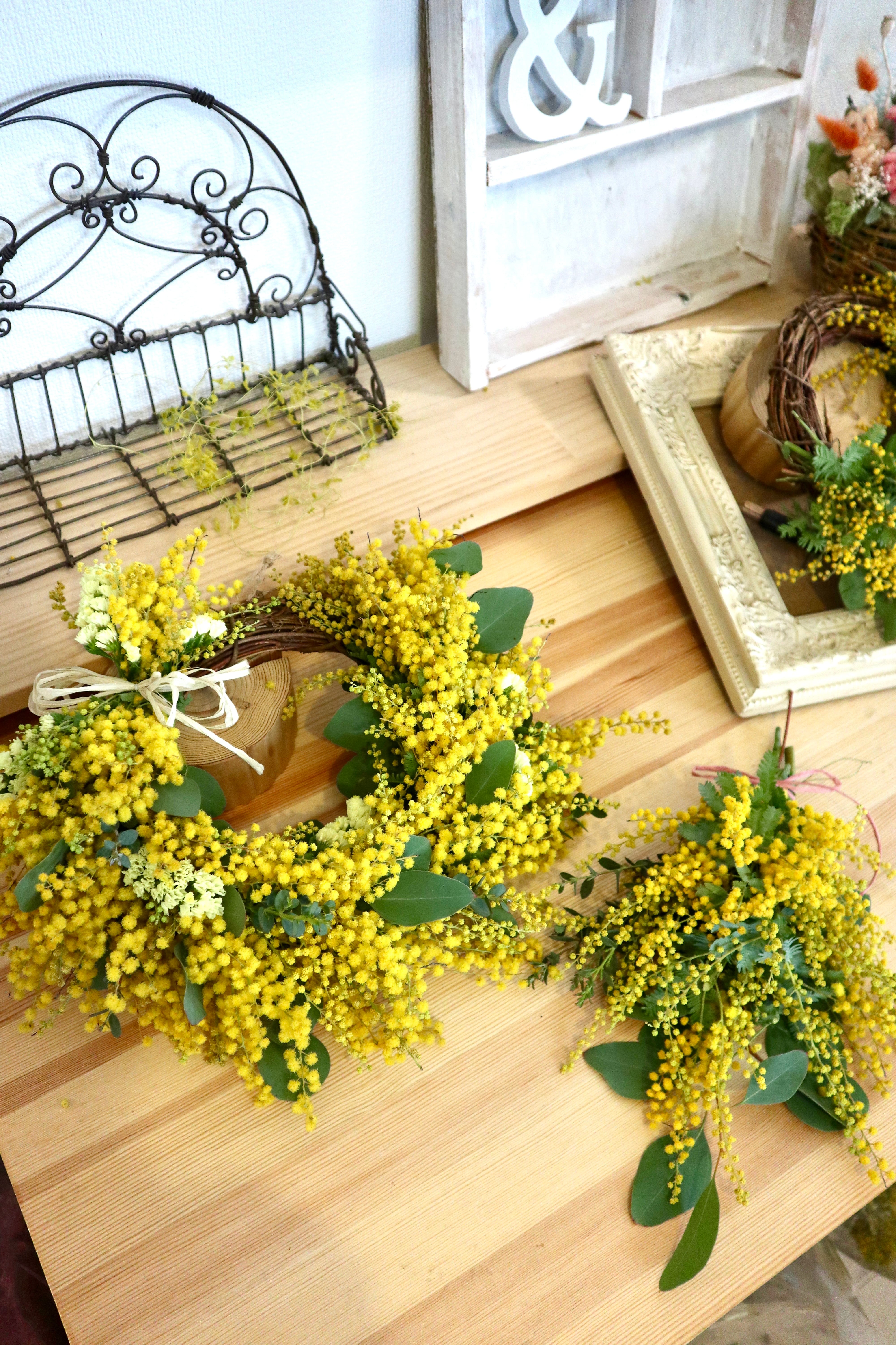 ミモザリースやミモザスワッグがお家で作れる花材キットです。